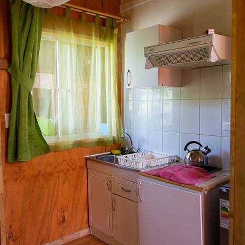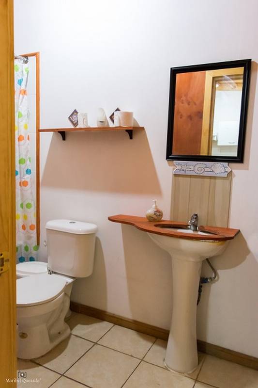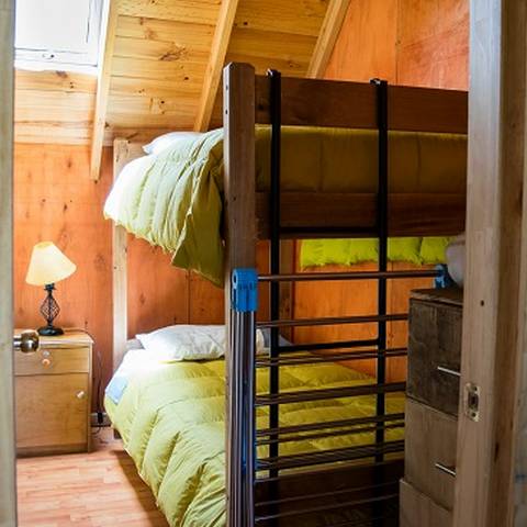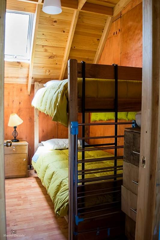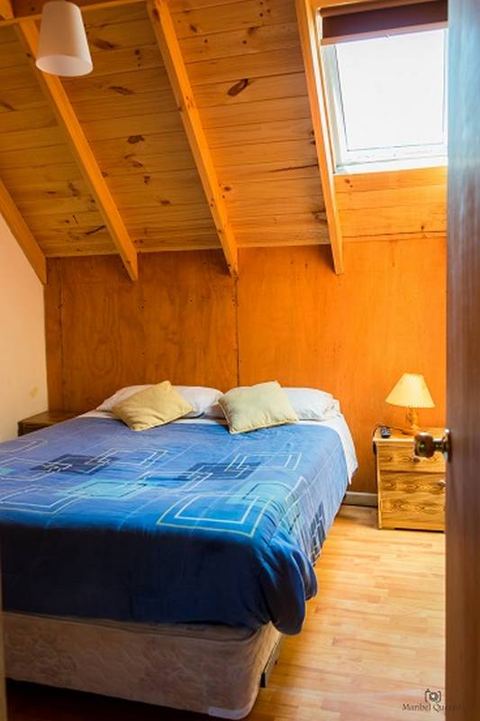 Departamento para cuatro personas con un dormitorio matrimonial con baño y otro dormitorio con camarote de una plaza. Al baño se entra por el dormitorio principal. Cuenta con baño privado, refrigerador, horno microondas, vajilla y losa para 4 personas, tv cable, sábanas y frazadas. Es recomendado para familia.